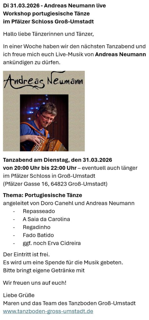 Live-Workshop Portugiesische Tänze mit: Andreas Neumann